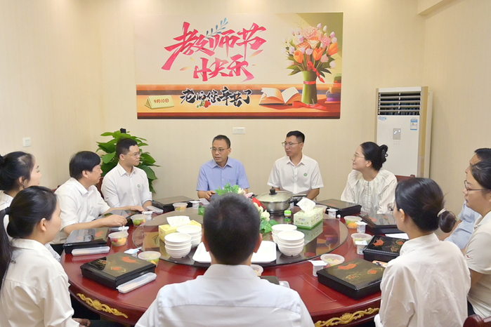 本网讯 9月10日中午,学校举行新进教师代表午餐会,校党委副书记、校长漆昌柱,党委副书记王基家与新进教师代表共进午餐,关注新进教师成长,同心共话育人初心。
